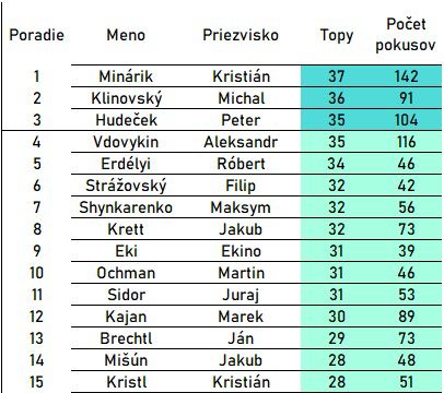 po 2. kole Boulder ligy
