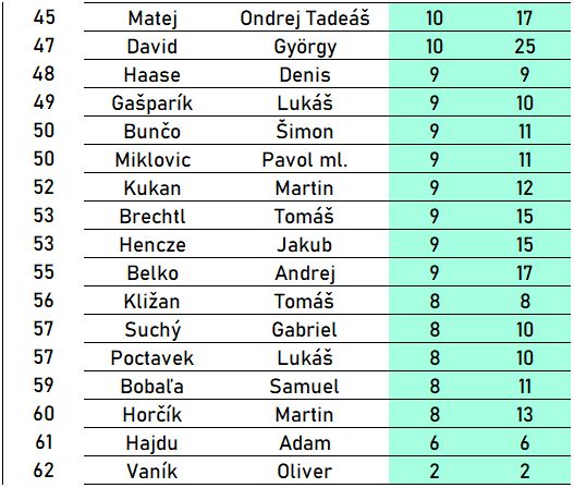 Výsledky nájdete nižšie, priebežné poradie nájdete tu a bude vyvesené aj priamo na stene.